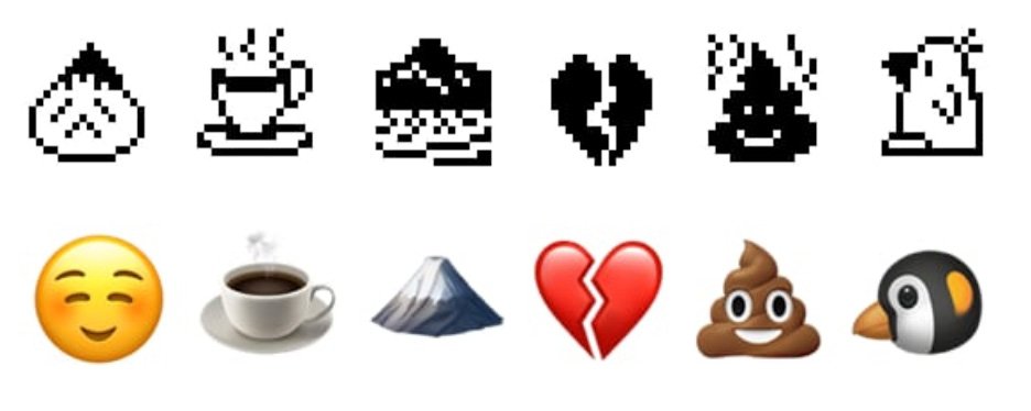 Emojis från slutet på 90-talet och idag. Bild från Internetmuseum.se